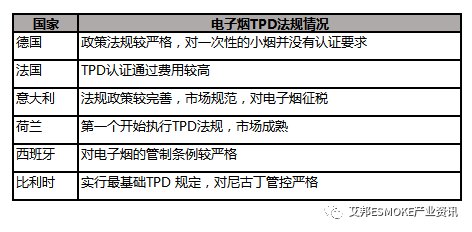 欧盟烟草产品指令(TDP)于2016年5月20日生效,具体适用于欧盟及英国等28个国家,但是由于各国对TPD的理解不同,具体条款也会有所不同。制造商和进口商必须遵守每一个国家的不同要求。