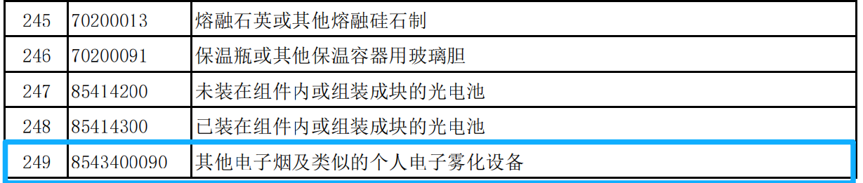 商品代码 8543400090 对应的 “其他电子烟及类似的个人电子雾化设备”,包括烟具、开放式设备等。