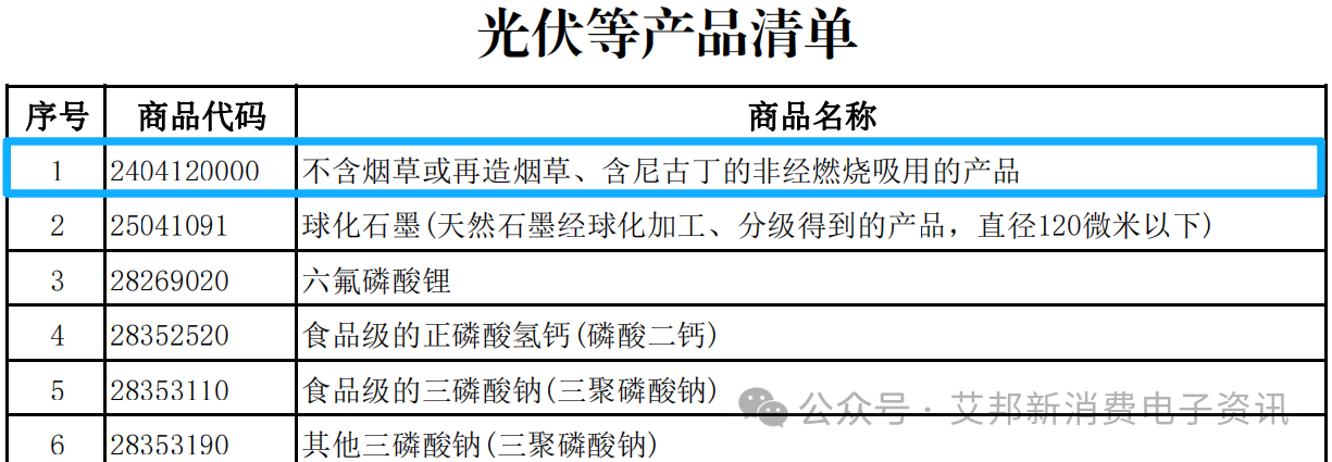 This policy adjustment explicitly includes e-cigarette-related products in the list of products for which VAT export tax rebates will be cancelled, specifically involving two key product categories: