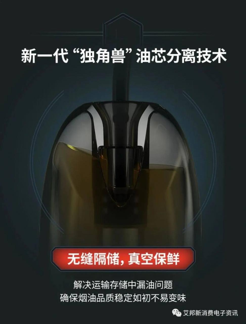 据说,这是采用了最新的油气分离技术。油气分离技术,就是将烟油和外界空气完全隔离开,防止因为外界环境变化而导致的漏油,既避免了油芯分离导致的无法直接抽,需要等待过油时间的问题,又实现了烟油的防漏防变味。