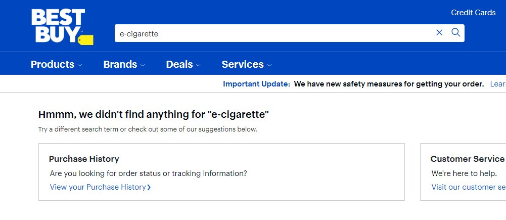 美国消费电子产品网站bestbuy已经检索不到“e-cigarette”“vape”等关键词