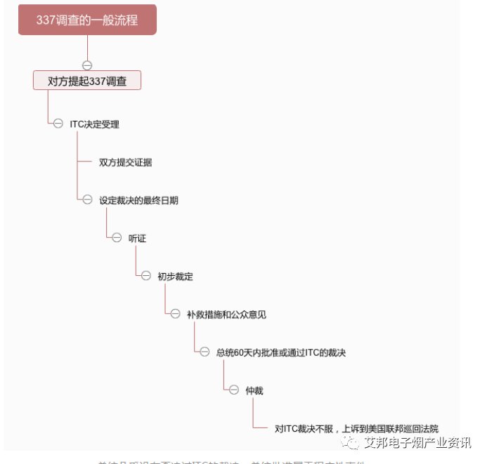 跟之前情况类似,此次中国机电产品进出口商会、中国电子商会电子烟电子烟行业委员会等组织也将负责协调和组织中国企业应对美国337调查。
