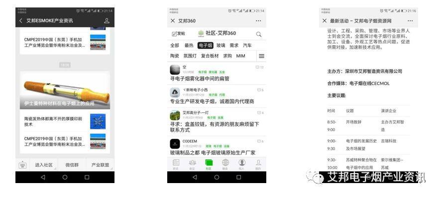 通过艾邦360社群、电子烟联盟网站、电子社群等多渠道开展供应链咨询服务,为优质供应链企业与终端企业间提供精准对接平台。